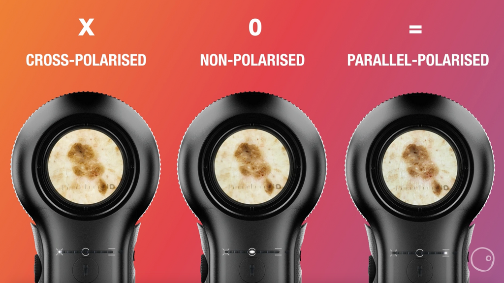 Toggle between DermLite-quality cross-polarised and non-polarised illumination visually highlight skin layers by scrolling through the entire polarisation range, from deep-penetrating cross-polarisation to extremely superficial parallel polarisation.