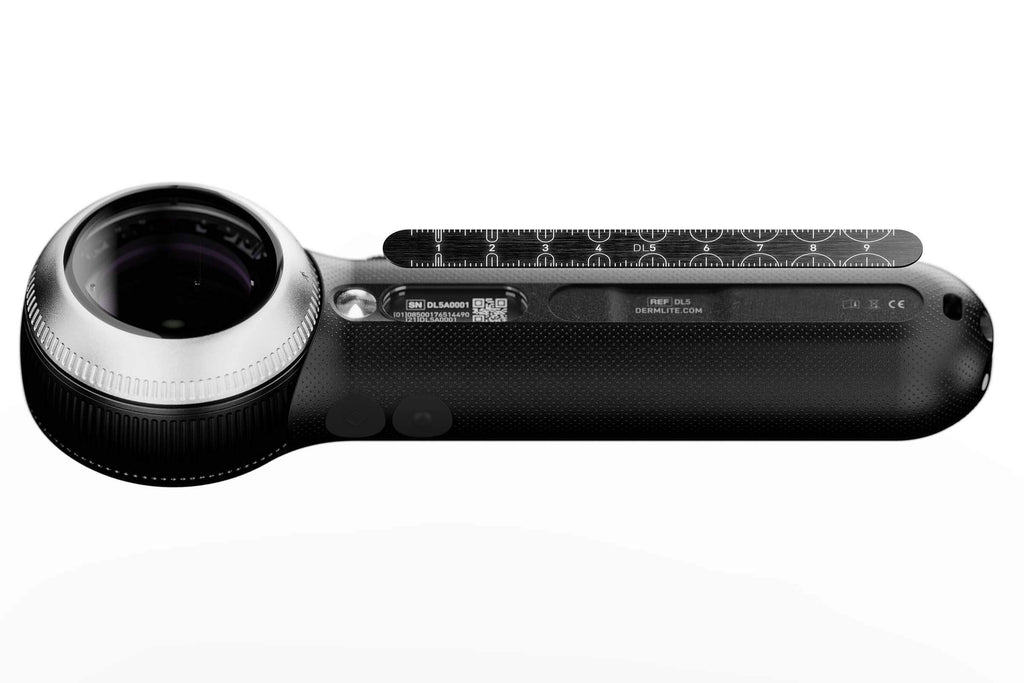 The DermLite DL5 is the world’s first hybrid dermatoscope with 365nm UV, allowing you to spot a host of fluorescing structures — at full 10x magnification. And, when you're quickly screening your patients' skin, DL5’s high-powered torch LED provides phenomenal illumination to larger areas or hard-to-reach spots. Need to measure a lesion? DL5 comes with an on-board, magnetically attached 100mm ruler. Simply slide it off and its semi-circular markings make it easier than ever to assess a lesion or choose the proper biopsy punch.
