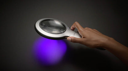 - Five lighting modes: white, 365nm, 385nm, 405nm, Wood